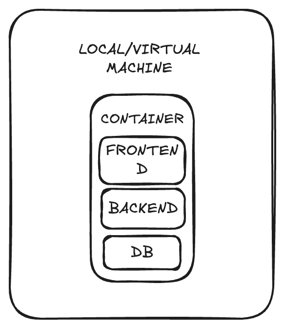 For example, you could have a full-stack application called ShopSmart, which has a frontend web app, backend services, and a database. All these parts of the whole could be within a container along with the required dependencies. The container would be made to run on either a virtual or local machine.