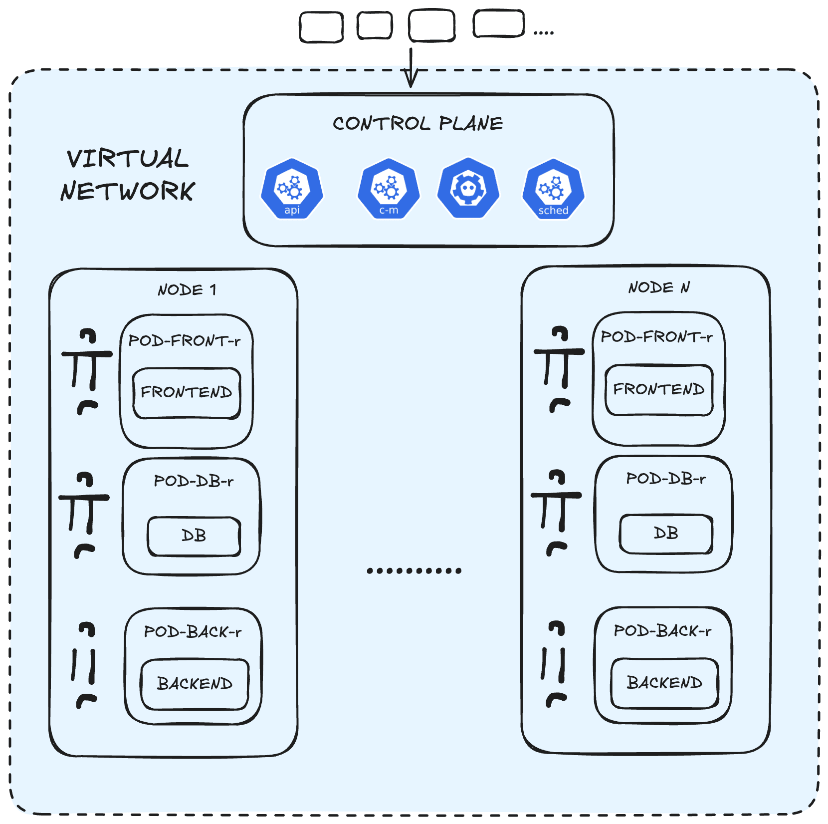 So, what would the Kubernetes cluster for our application look like then?