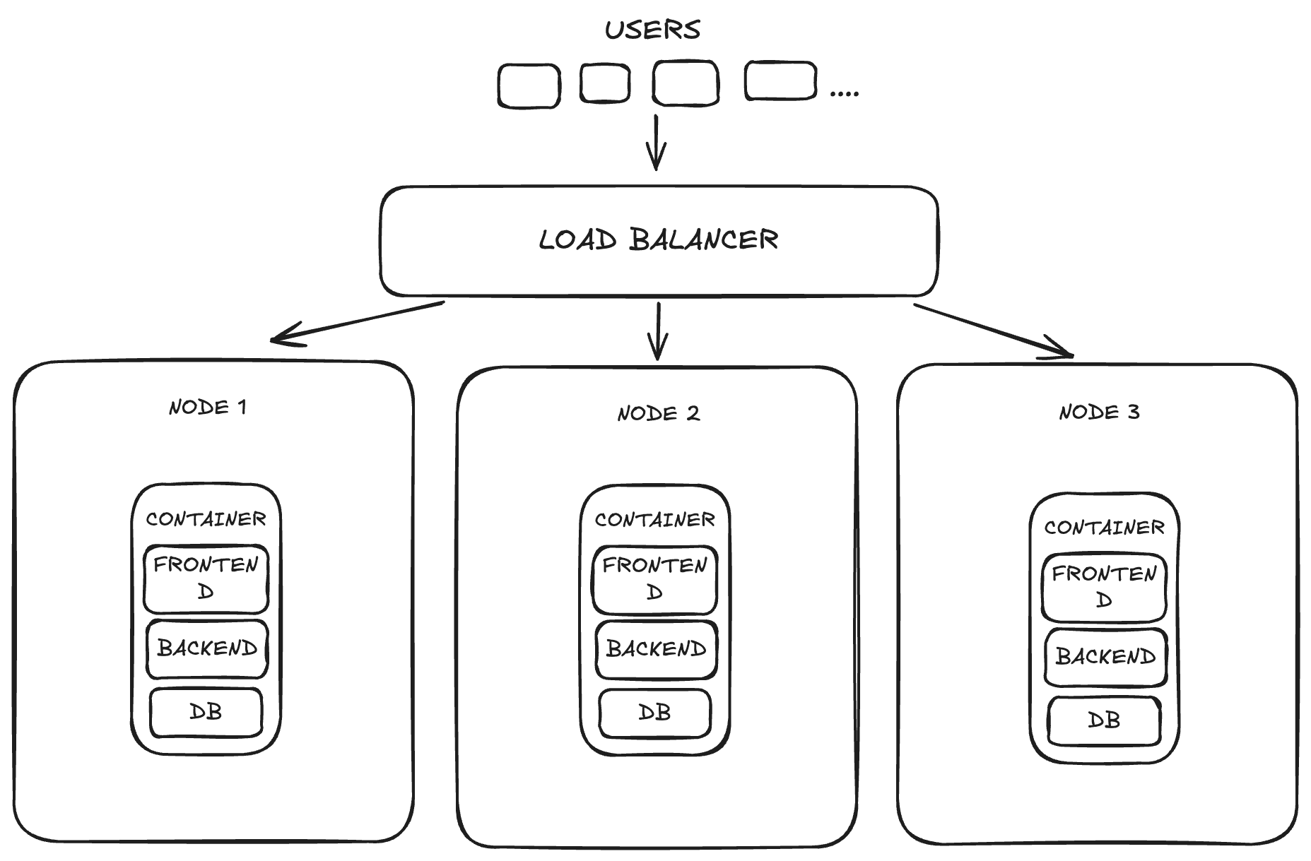 So you adapt to the rising load by horizontally scaling your application by increasing the number of replicas of your containers and connecting them to a load balancer so that the requests are shared among them efficiently.